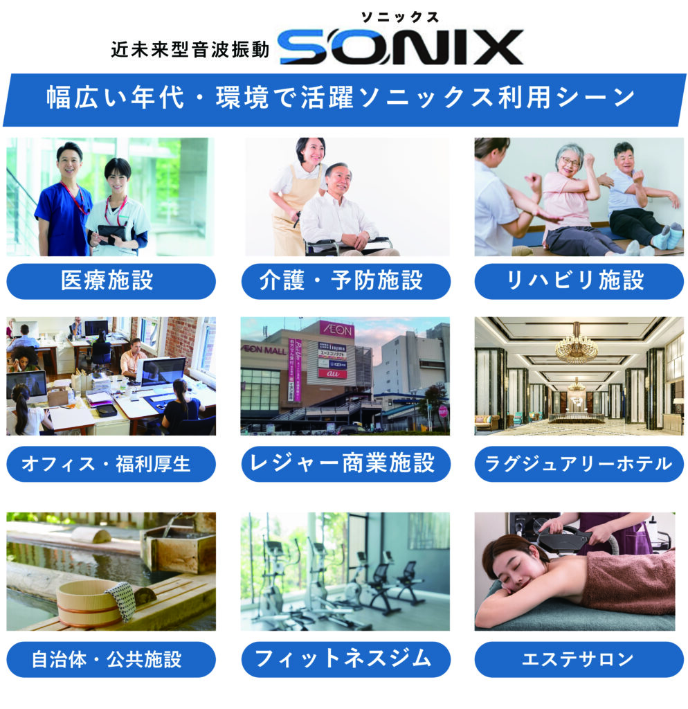 Sonic Wave は関節や靱帯(じんたい)、(もも)などに無理を与えずに、効果的な刺激運動ができます。限られた狭いスペースでも有酸素運動と無酸素運動を誰でも同時にする事ができます。小さい子供から体の動きにくいお年寄りまで、幅広くご活用いただけます。