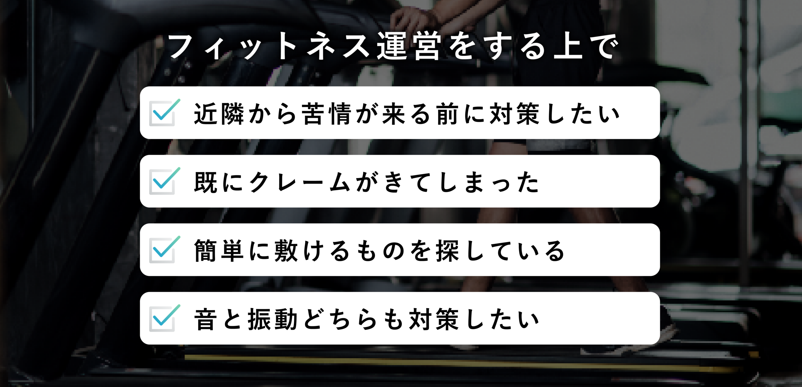 現在、多くのフィットネス施設では、マシン下に一般的なマットを敷くことで騒音・振動対策を行っています。しかし、それだけでは十分な効果が得られず、下階や隣室からの振動や音の苦情が後を絶ちません。お客様のお困りを解決したいという背景を経て、「SPORUCELL PAD」が誕生しました。